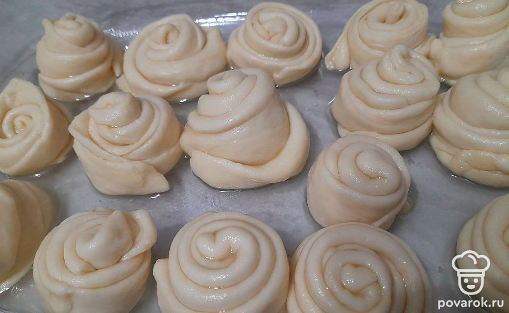 Переложите булочки в жаростойкую форму, смазанную подсолнечным маслом. Оставьте на 30 минут.