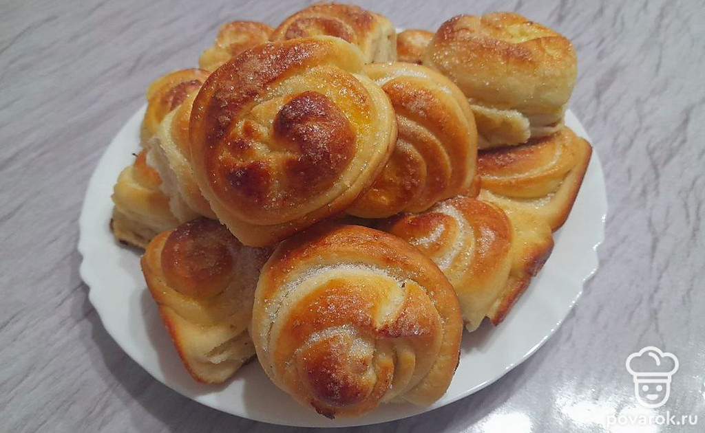 Выложите сладкие булочки на сервировочную тарелку и подайте к столу. Приятного аппетита!