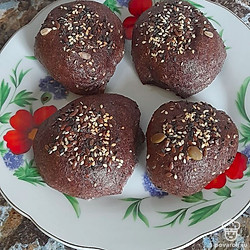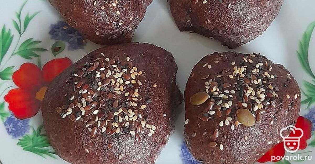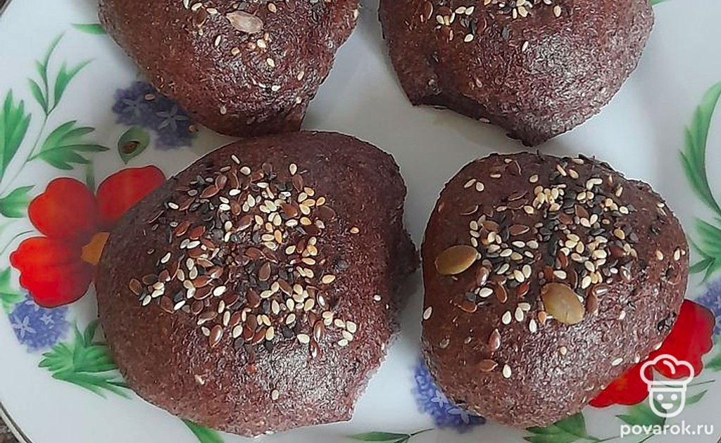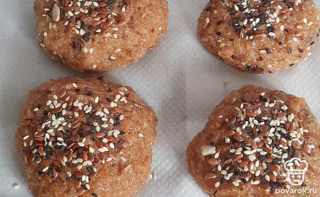 Слепите круглые булочки, посыпьте различными семенами (кунжут белый, кунжут черный, лен, семечки подсолнуха, тыквенные семечки). Выложите на противень и выпекайте 30-40 минут.