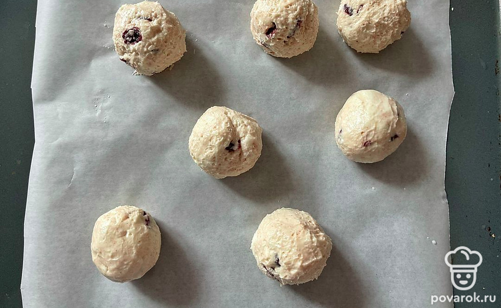 Влажными руками формируйте шарики и выкладывайте на пергамент. Выпекайте в духовке 20 минут при 180 градусах.