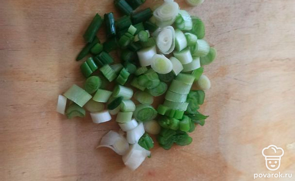 Лук мелко нарежьте. Немного лука оставьте для подачи.
