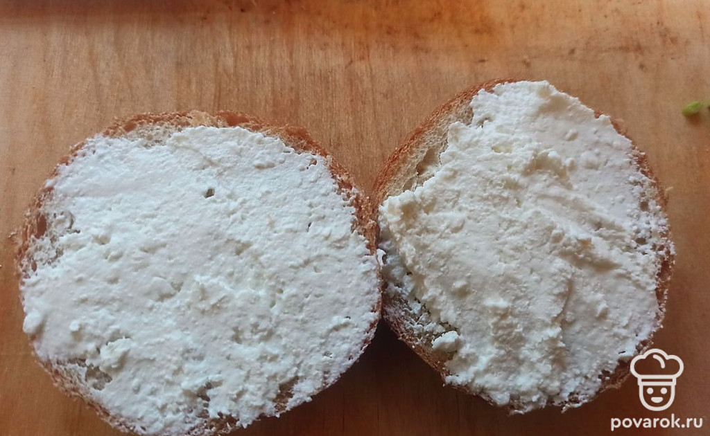 Для подачи намажьте творогом и посыпьте зеленым луком.