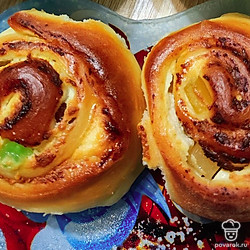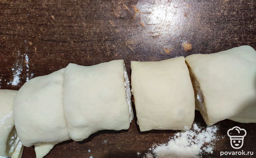 В опару добавить яйца, муку. Когда тесто станет достаточно густым, добавить масло и, постепенно вводя муку, выместить тесто, чтобы не липло к рукам и было мягкое. Оставить подходить на 40-60 минут. Периодически обминать.