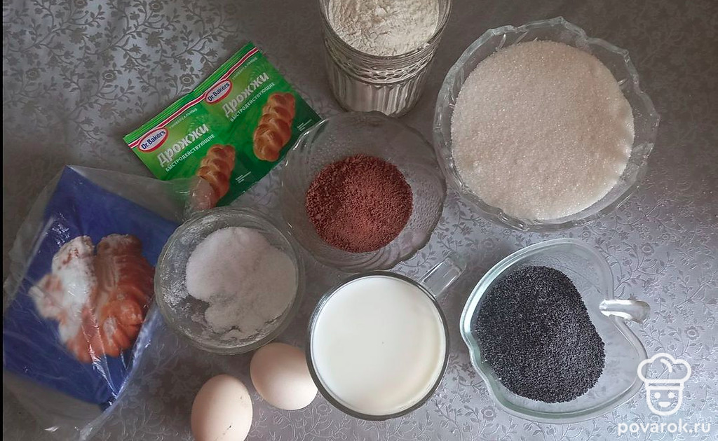 Подготовьте все ингредиенты. Мак залейте горячей водой и отставьте в сторону.