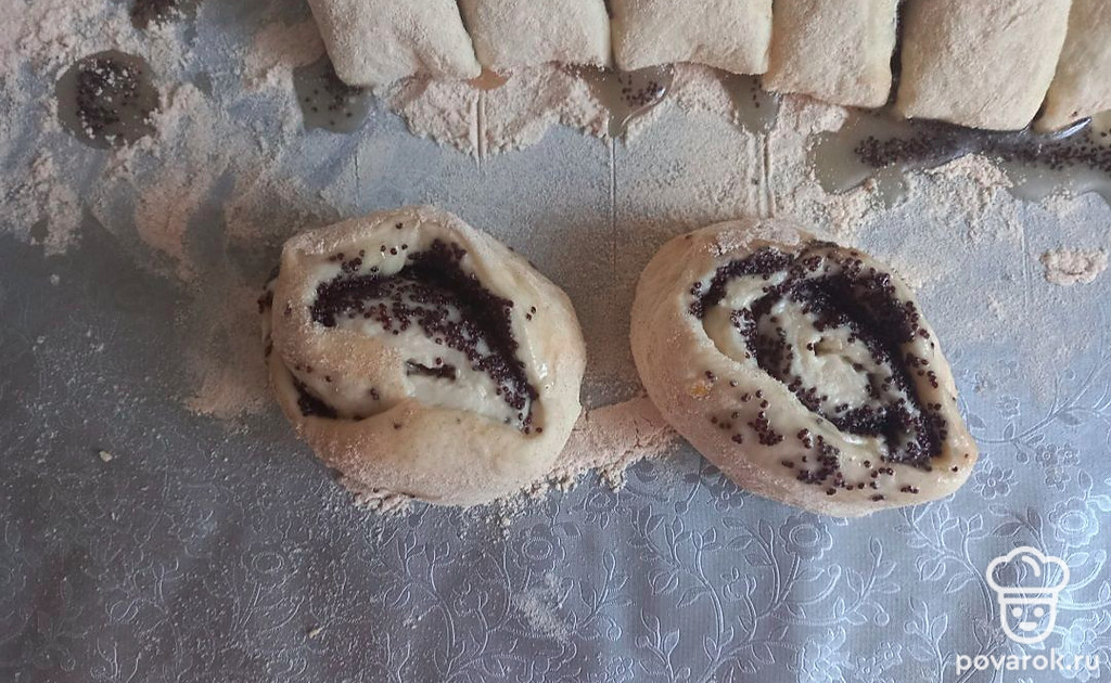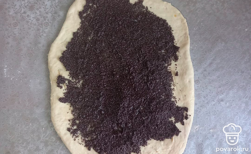 Отожмите мак, смешайте с ложкой сахара и распределите по всему тесту. Края оставьте свободными.