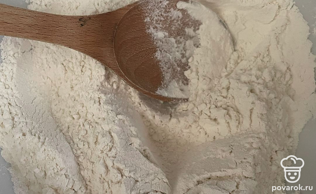 Соду смешайте с мукой.
