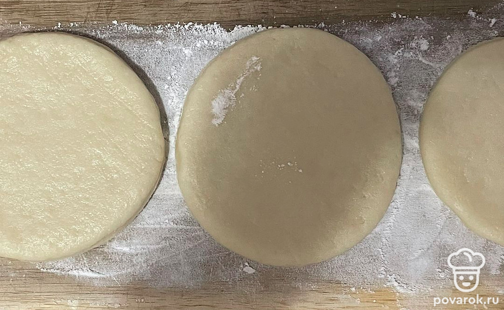 Раскатайте тесто, из теста вырежьте стаканом кружочки.