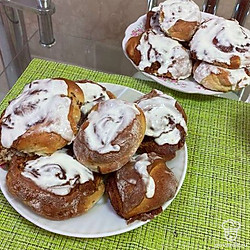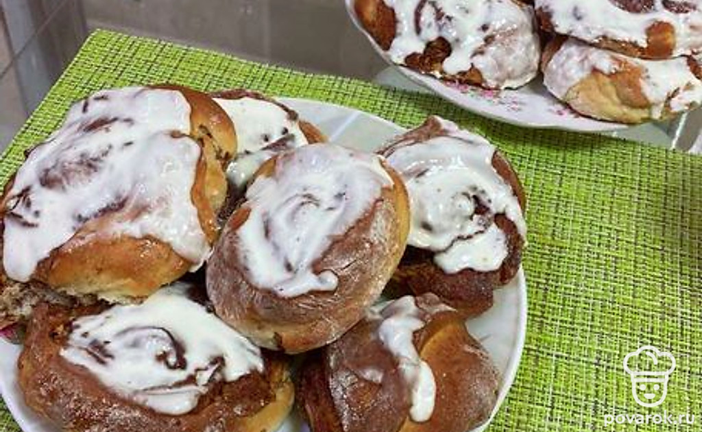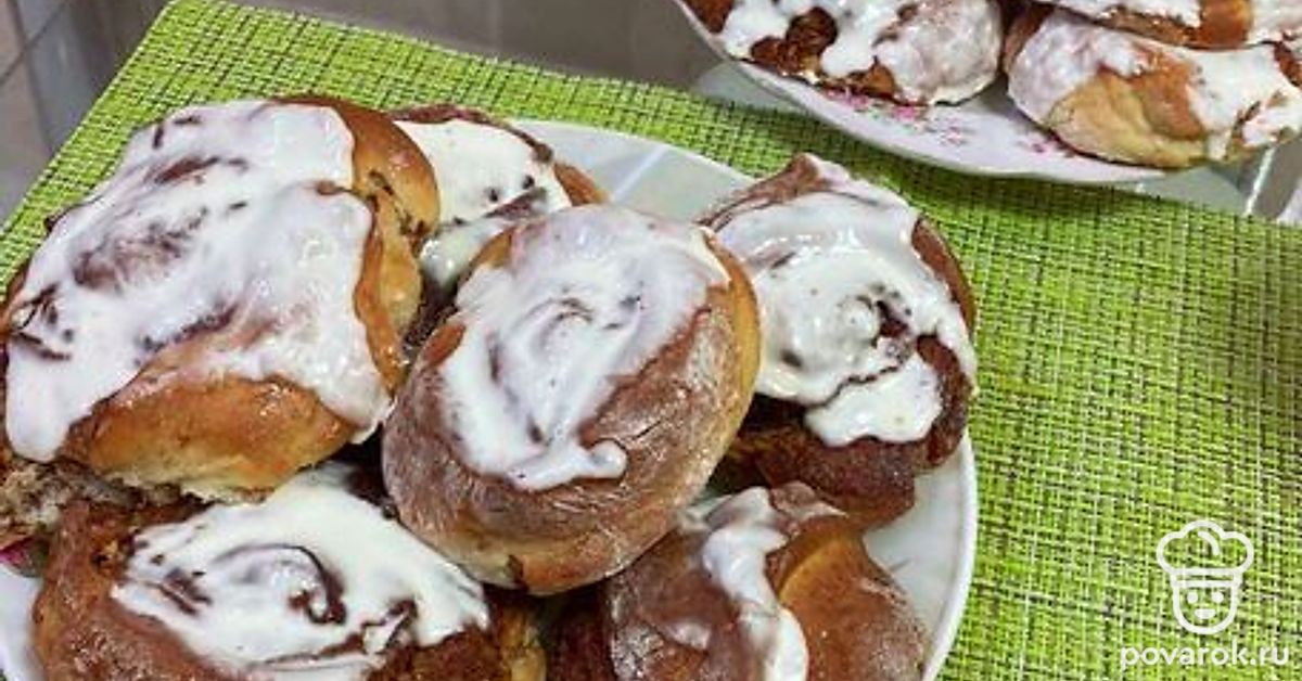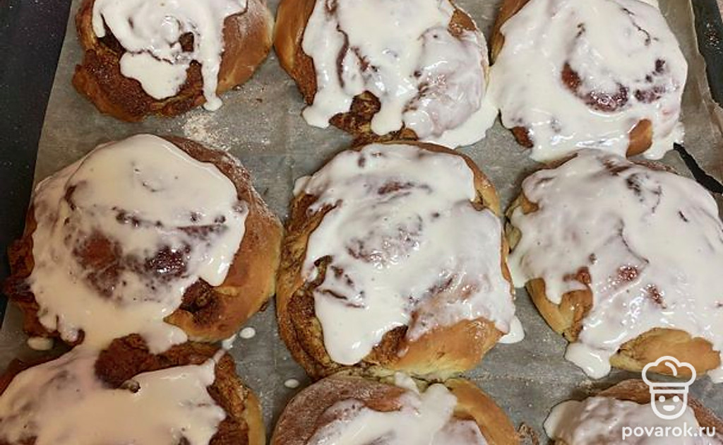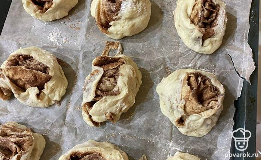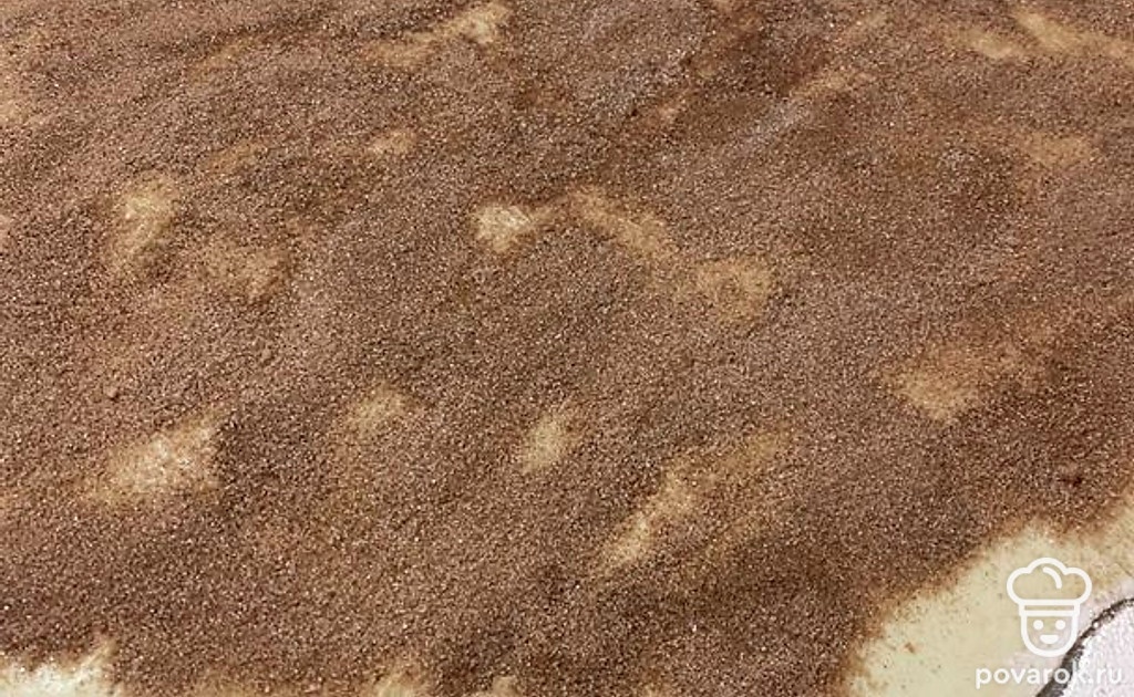 Потом раскатайте тесто. Смешайте сахар и корицу и добавьте на тесто.