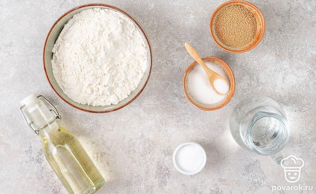 Просейте муку при помощи сита. Заранее подогрейте воду до 37-38°C, то есть чуть выше температуры тела. Подготовьте бумагу для выпечки и противень.
