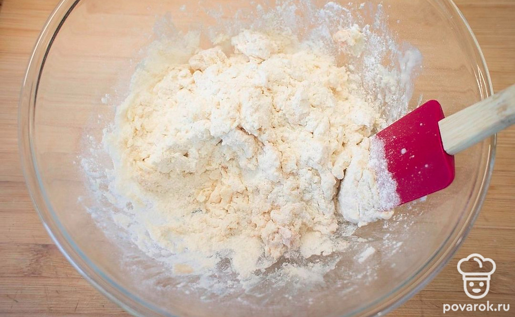 В большую миску просейте муку и добавьте к ней 50 грамм сахара, 2 грамм соли и ½ чайную ложку ванильного сахара. Растопите 25 грамм сливочного масла и дайте ему остыть.