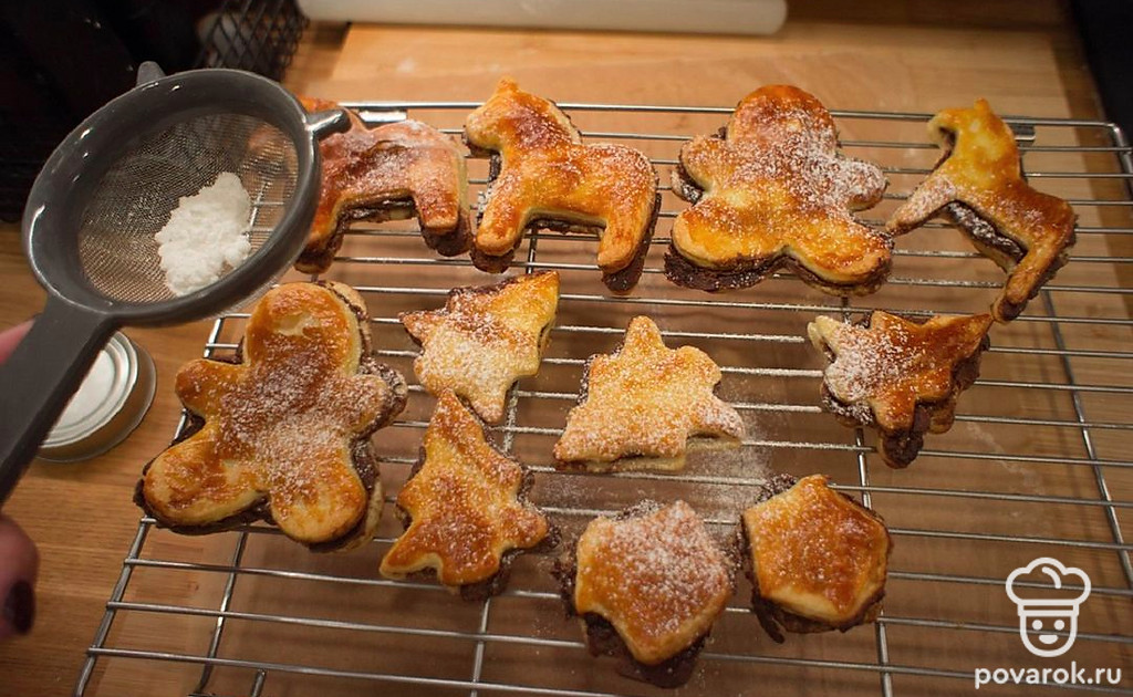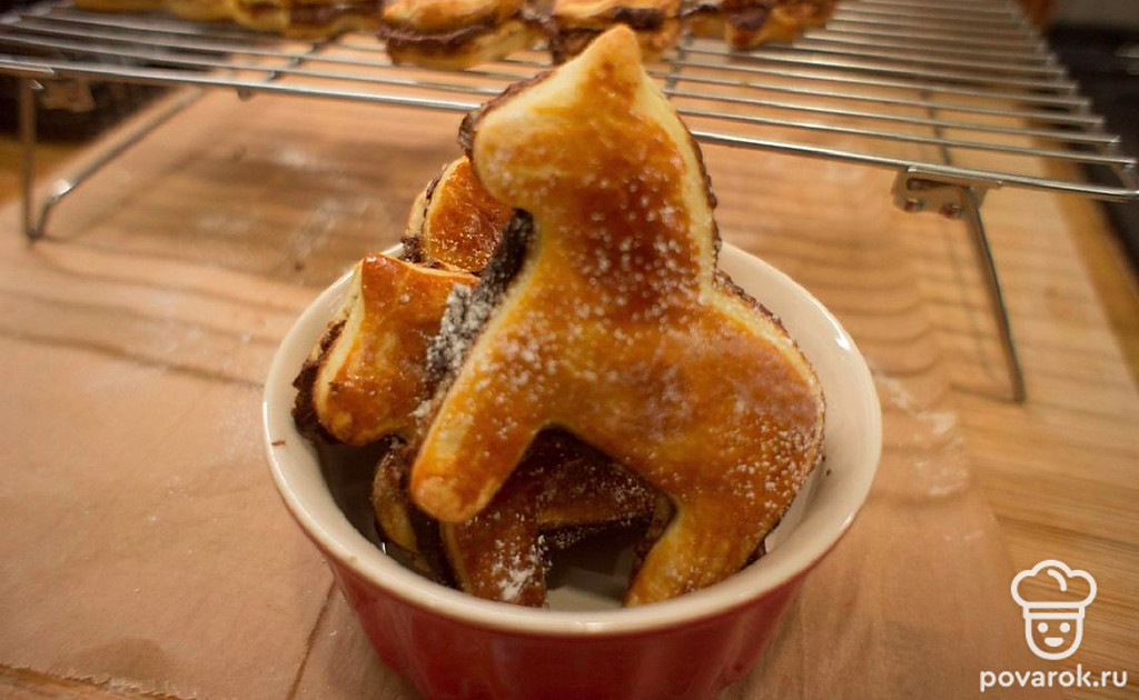 Если в процессе выпекания слойки вздуются, прижмите их вилкой, воздух выйдет и они примут первоначальную форму.