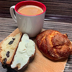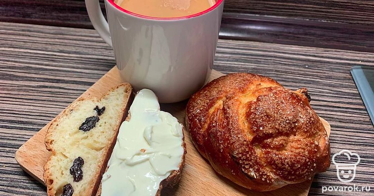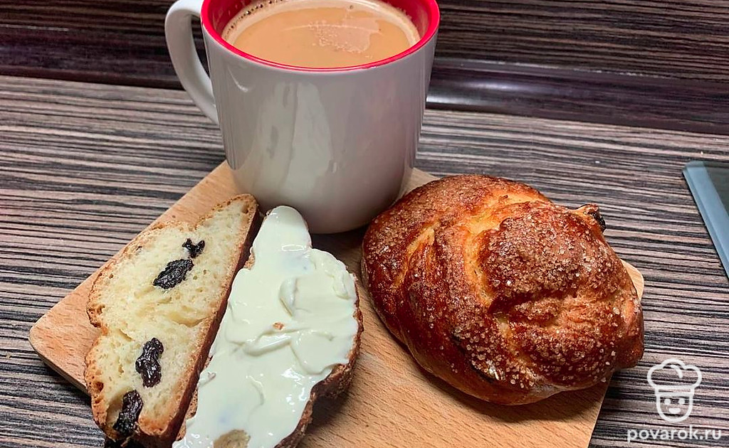 Приготовьте кофе со сливками и подавайте булочки, намазав сверху мягким творогом. Приятного аппетита!