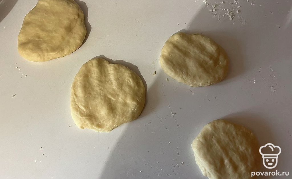 Разделите его на 4 части и из каждой сделайте небольшие лепешки.