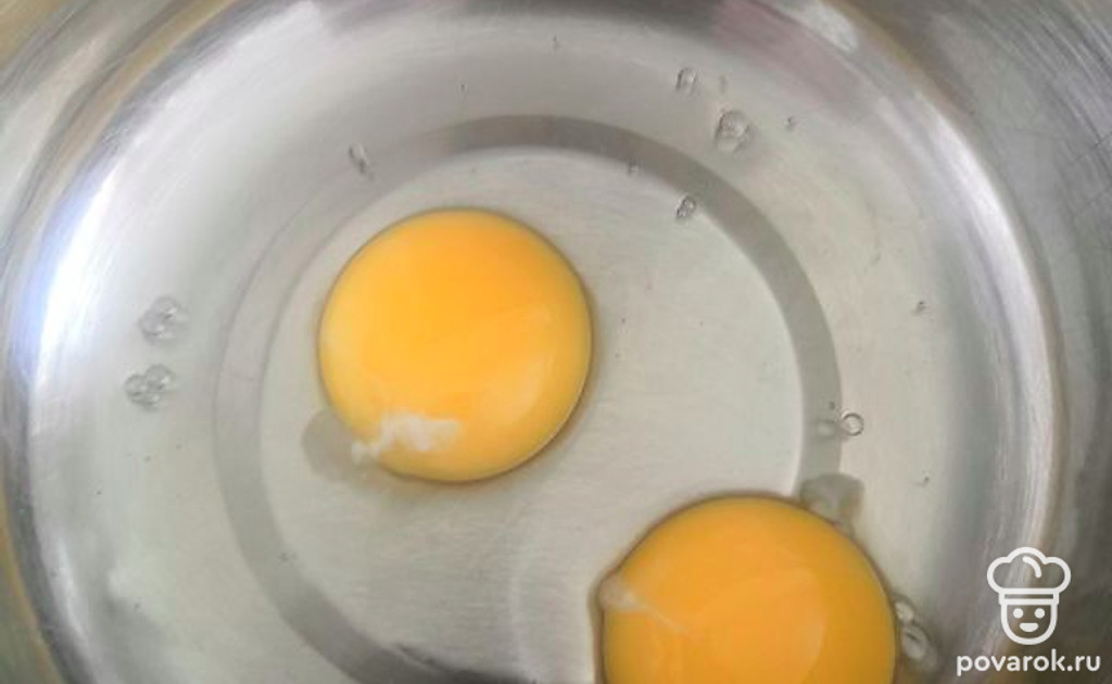 После того как опара поднялась, в отдельной миске разбиваем яйца (у меня два больших яйца).