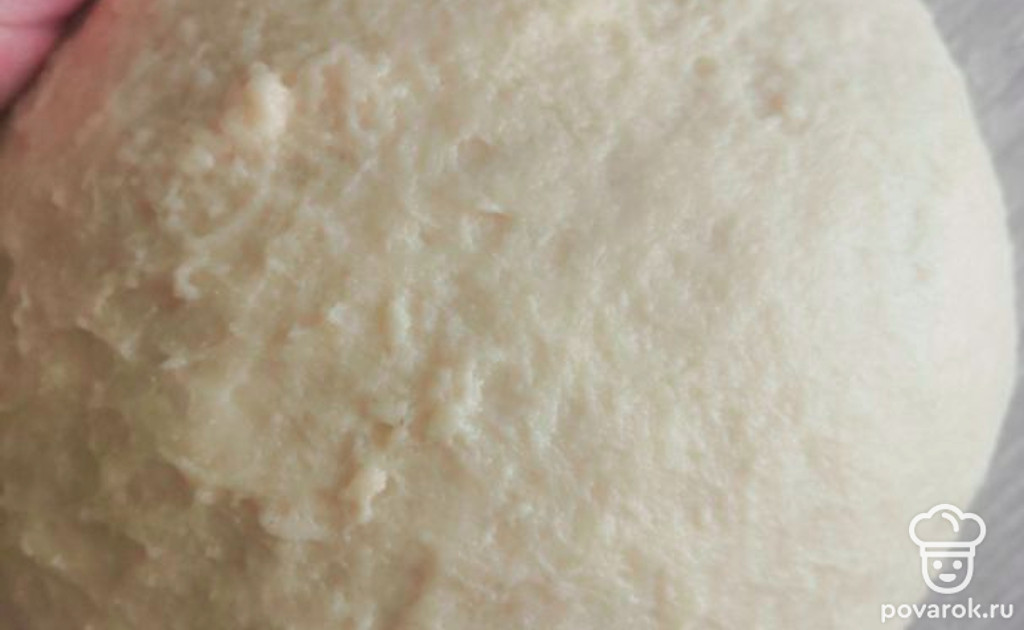 Вымешиваем тесто, оно не должно сильно липнуть к рукам.