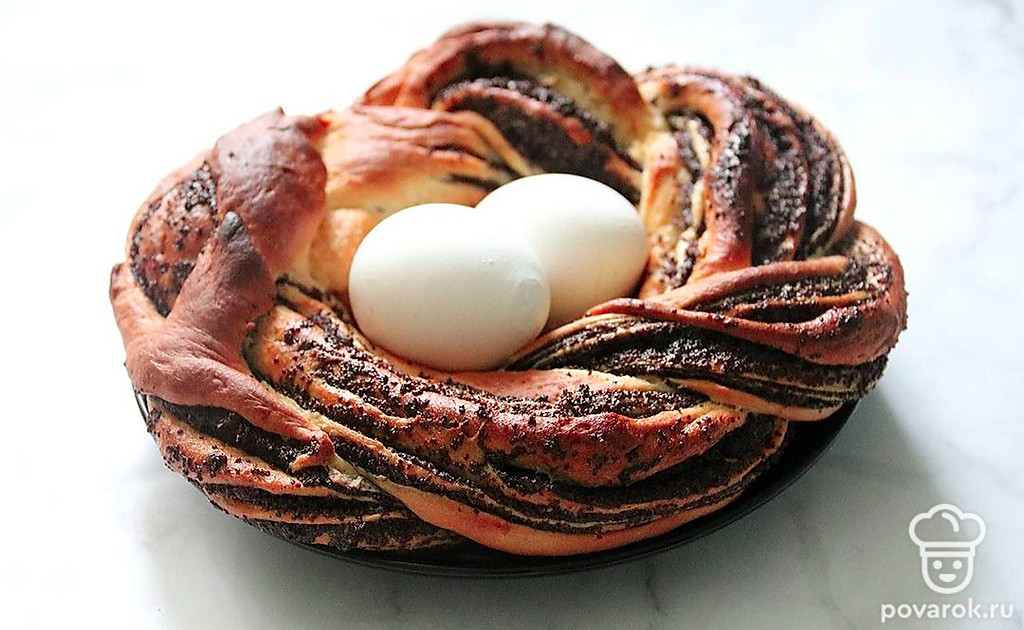 В серединку я поставила кулинарное кольцо небольшого диаметра, чтобы далее положить туда окрашенные пасхальные яйца. Но это можно и не делать.