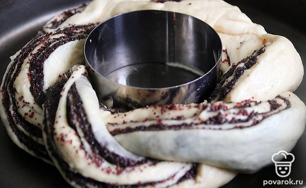 Раскатываем тонкой прямоугольник и накладываем маковую начинку.