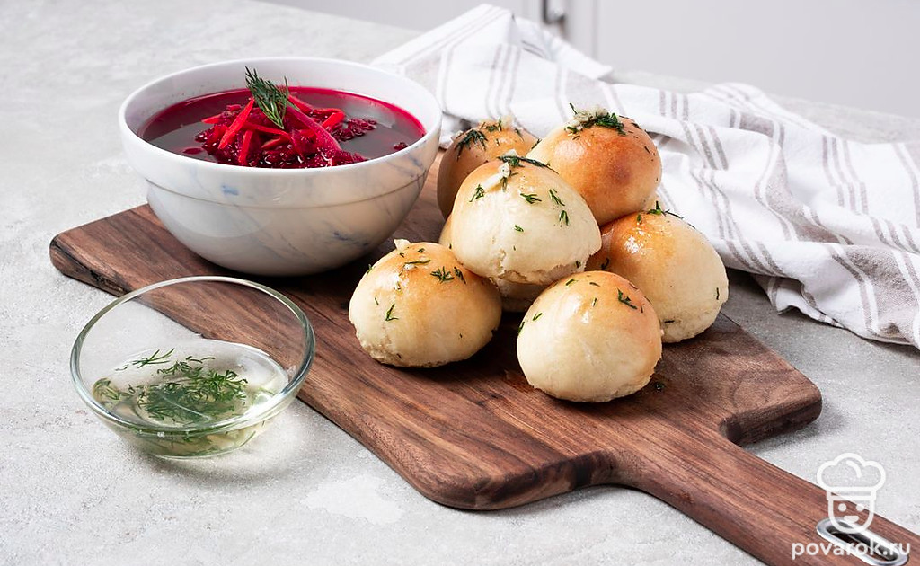 Приготовьте постные ароматные чесночные пампушки и вы точно сможете порадовать близких. Они идеально подойдут к постному борщу или любому другому супу как альтернатива обычному хлебу. Но эти булочки можно есть и просто так. Если вместо чесночной заправки смазать их вареньем, то получатся вкуснейшие пышные булочки к чаю.