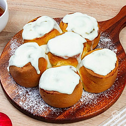 Готовые синнабоны немного остудите и полейте сырной глазурью.