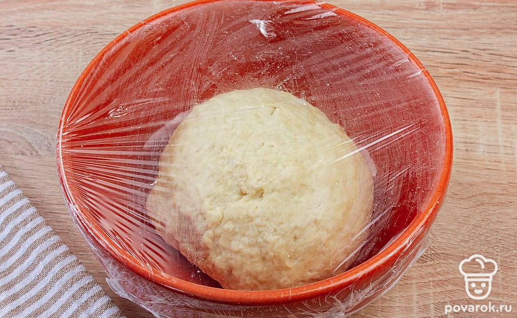 Подогрейте молоко до теплого состояния и влейте в большую глубокую миску. Раскрошите руками свежие дрожжи и добавьте в теплое молоко. Всыпьте 3 столовые ложки сахара и перемешайте. Оставьте дрожжевую смесь на 10-15 минут. За это время она должна немного подойти и покрыться пузырями. Добавьте в дрожжевую смесь растопленное сливочное масло и просеянную муку. Замесите эластичное тесто, сформируйте из него шар и выложите в миску. Накройте тесто пищевой пленкой и оставьте подходить на 1 час.