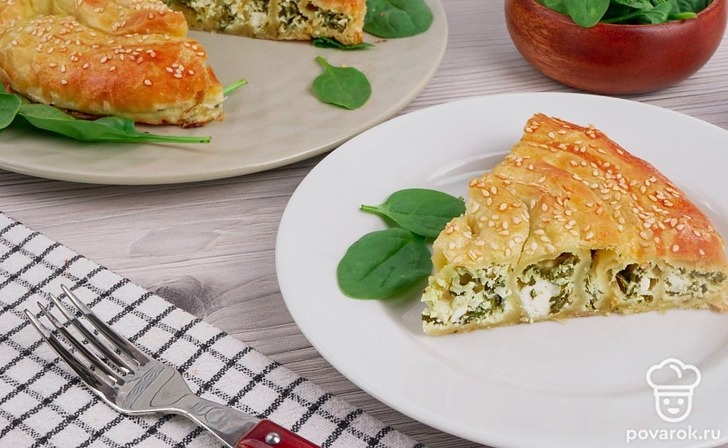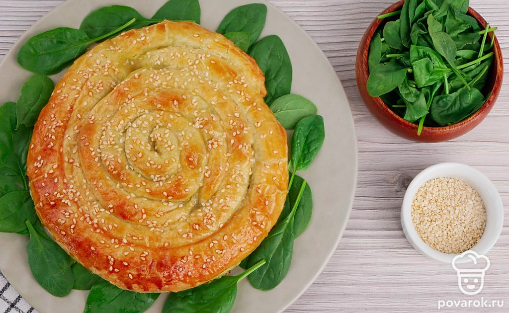 Быстрая и легкая в приготовлении улитка с сыром и шпинатом придется по вкусу любителям греческой кухни. Такое блюдо можно подать как закуску на праздничный стол или приготовить для легкого ужина или завтрака в кругу семьи. Выпечка содержит необычную начинку, которая дарит наслаждение пикантным вкусом. Улитку можно приготовить как большой пирог, так и разделить на маленькие штучки, которые будет удобно взять с собой в качестве перекуса. Попробуйте, вам обязательно понравится!