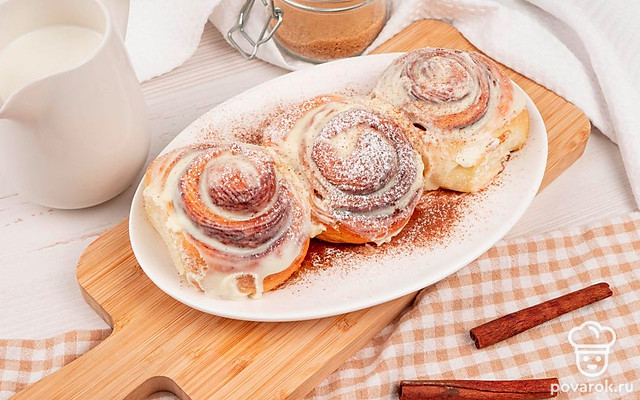 В прошлом столетии появилась американская сеть ресторанов быстрого питания «Cinnabon». Она осчастливила многих сладкоежек и прославилась приготовлением булочек с корицей в сливочной глазурью. В настоящее время их можно приготовить и самостоятельно в домашних условиях! Синнабоны отличаются большим количеством корицы и коричневого сахара в начинке, а также в нежном сливочном креме. Его делают на основе сливочного сыра, сливочного масла и сахарной пудрой! Иногда вместо масла используются сливки.