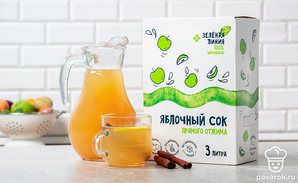 Если на медленном огне сварить яблочный сок с коричневым сахаром, лимоном, апельсином, корицей и мускатным орехом, то получится совершенно другой напиток. Пряный, очень вкусный, согревающий сок с восхитительным ароматом создаст уютную атмосферу в любом доме. Подавайте его в кружках с толстыми стенками или термокружках. В чашку положите палочку корицы и кружочек лимона. Храните готовый сок в термосе, чтобы он дольше оставался горячим. Можете взять его с собой на прогулку, чтобы согреться на улице.