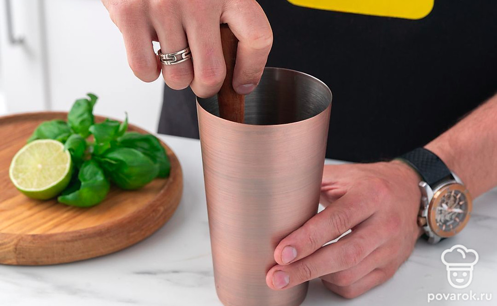 Этот игривый коктейль готовится на основе полусладкой настойки на крыжовнике. У нее сбалансированный мягкий вкус с кисло-сладкими ягодными нотками. Для добавления пряного аромата и сладости нужно растолочь несколько листочков базилика с сахарной пудрой. А сок лайма выгодно подчеркнет это сочетание. Ту самую игривость коктейлю придаст брют. Подавайте «Кринжовник» в высоком бокале, украсив листочками базилика.