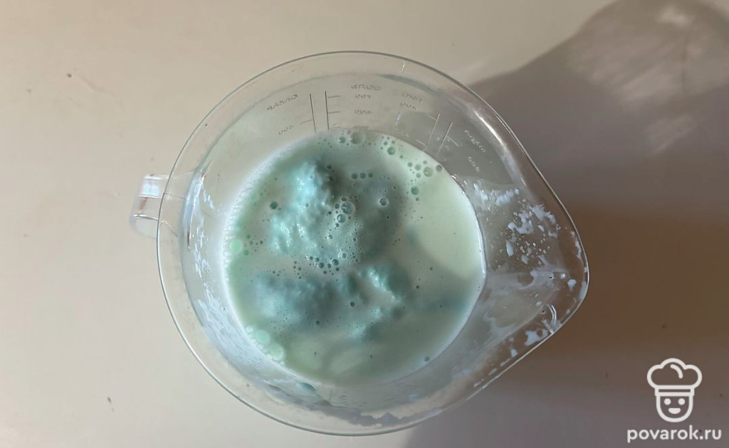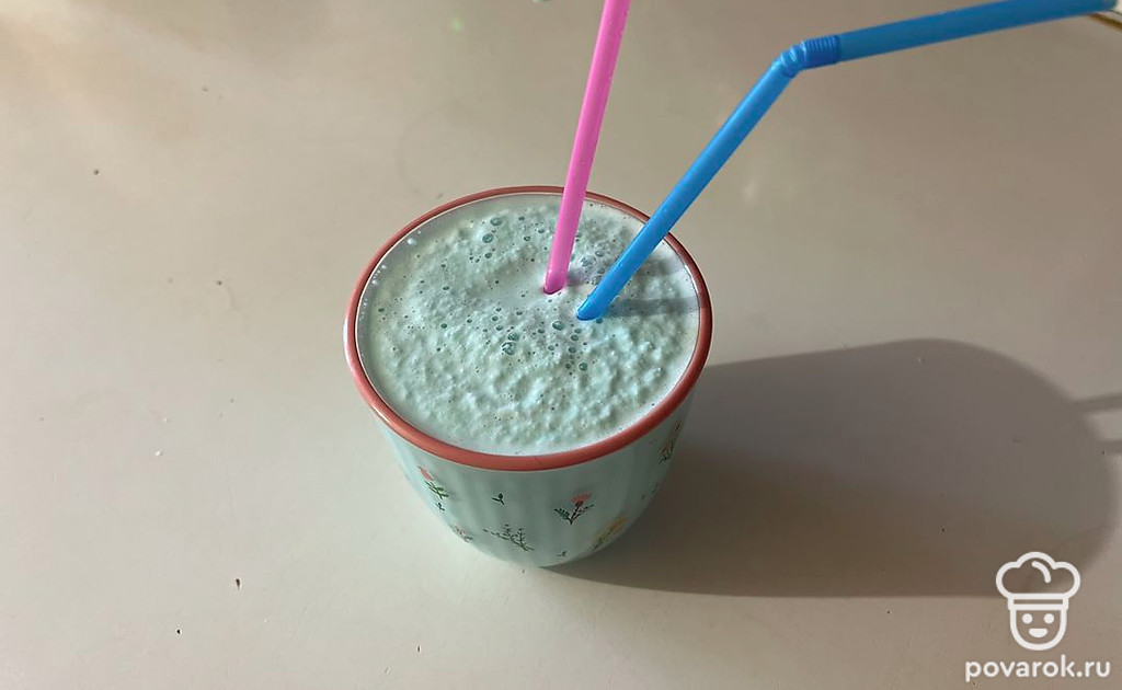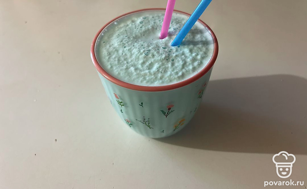 Взбейте коктейль миксером до легких пузырьков (как на фото).
