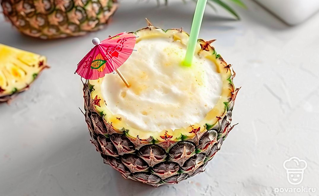 Бодрящий коктейль «Пина колада» в ананасе