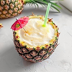 Этот бодрящий коктейль пина-колада, на основе сока, рома и кокосового молока, украсит вашу вечеринку своей необычной подачей в ананасе. Готовится коктейль легко и просто. В особо жаркие дни лета отлично освежит вас и утолит вашу жажду. Из-за необычной подачи, будет ярким декором вашего столика у бассейна.