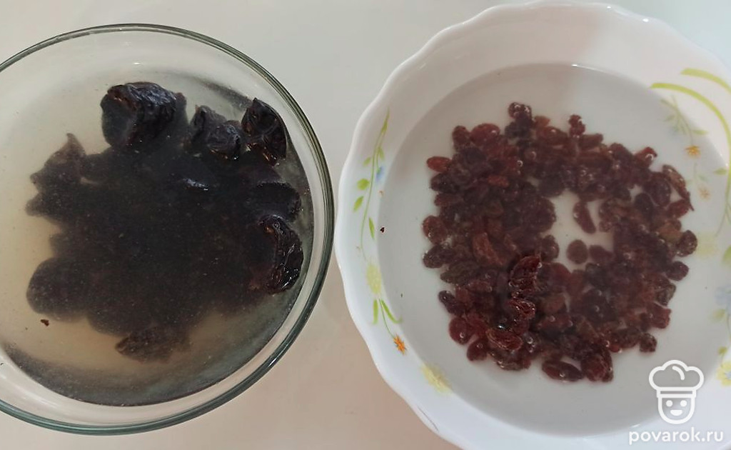Чернослив и изюм замачиваем в воде на 10 минут.