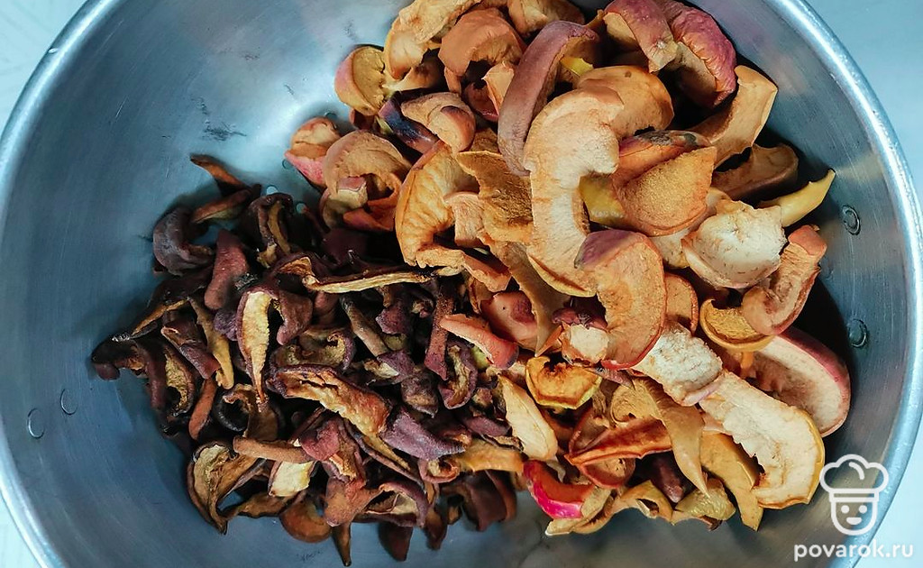 Сушеные яблоки и груши хорошо промойте.