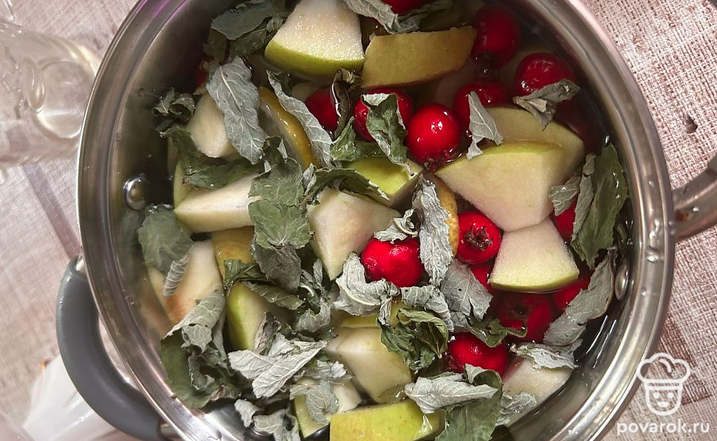 В конце выложить мытую мяту. Отправить на газ, варить 30 минут.