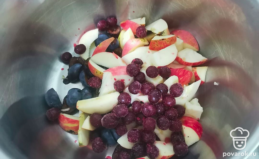 Компот из терна с яблоком и вишней