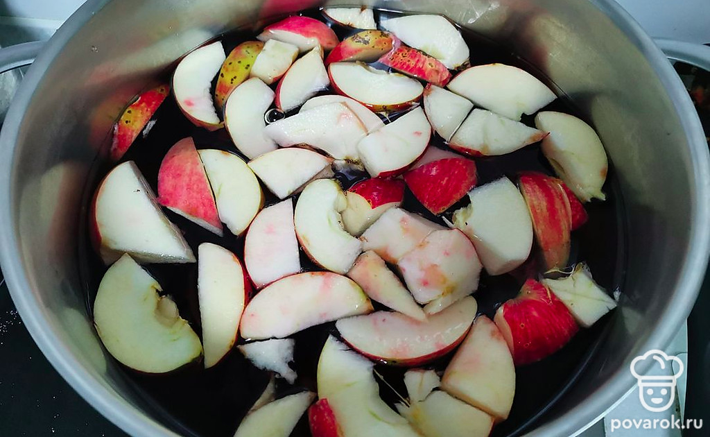 Добавить нарезанные дольками яблоки.