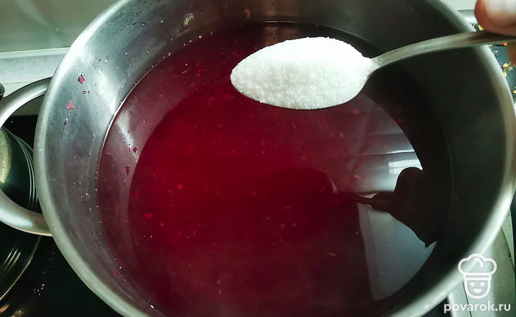 Удалить все вываренные фрукты шумовкой и добавить сахар.