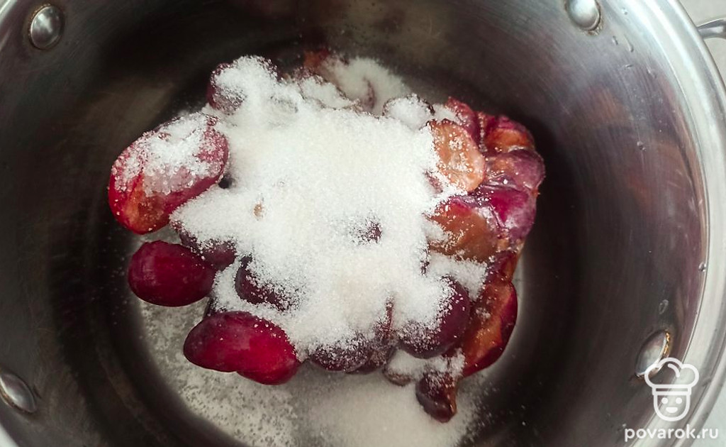 Сливы засыпаем сахаром.