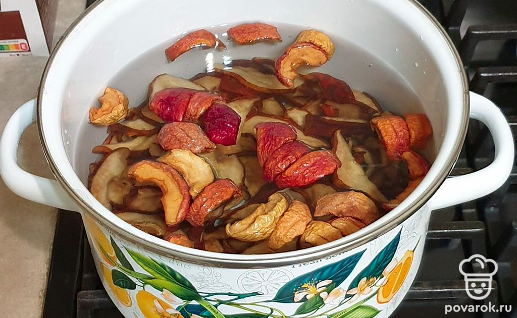 Сухофрукты хорошо промойте холодной водой. В кастрюлю налейте воду, опустите в нее сухофрукты и поставьте на огонь.