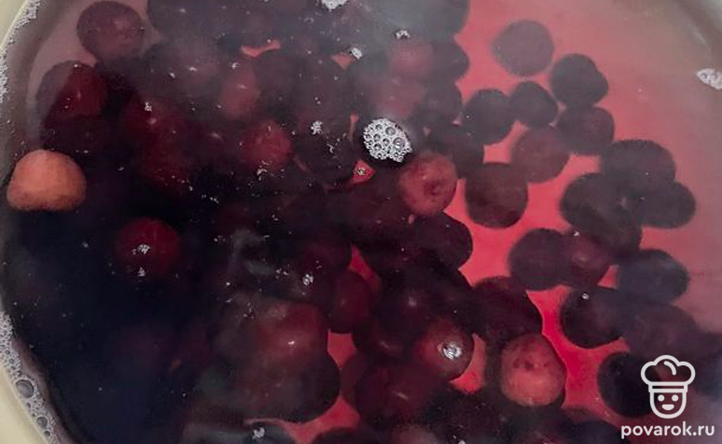 Замороженную вишню выкладываем в кастрюлю с водой.