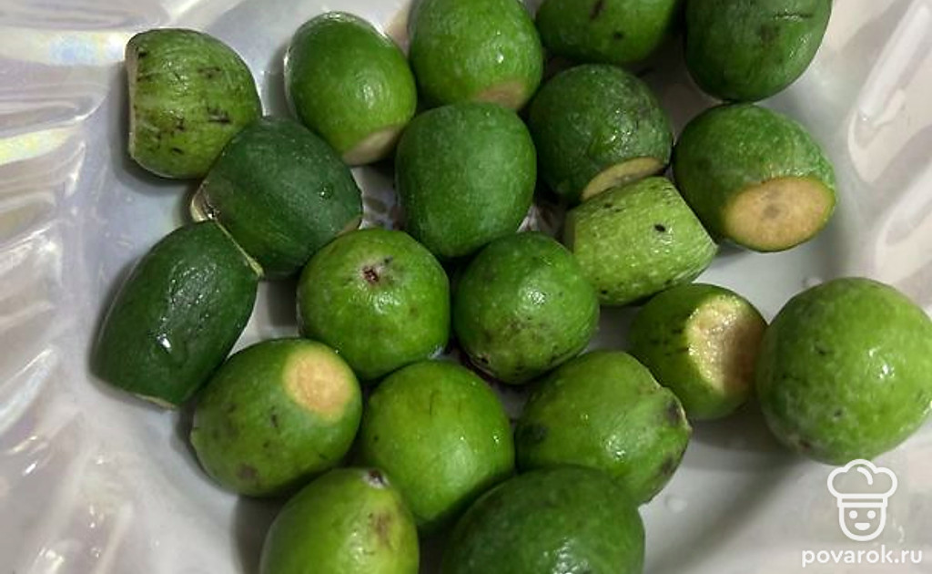 В кипящую воду выложить фейхоа, варить на среднем огне под крышкой 25-30 минут.