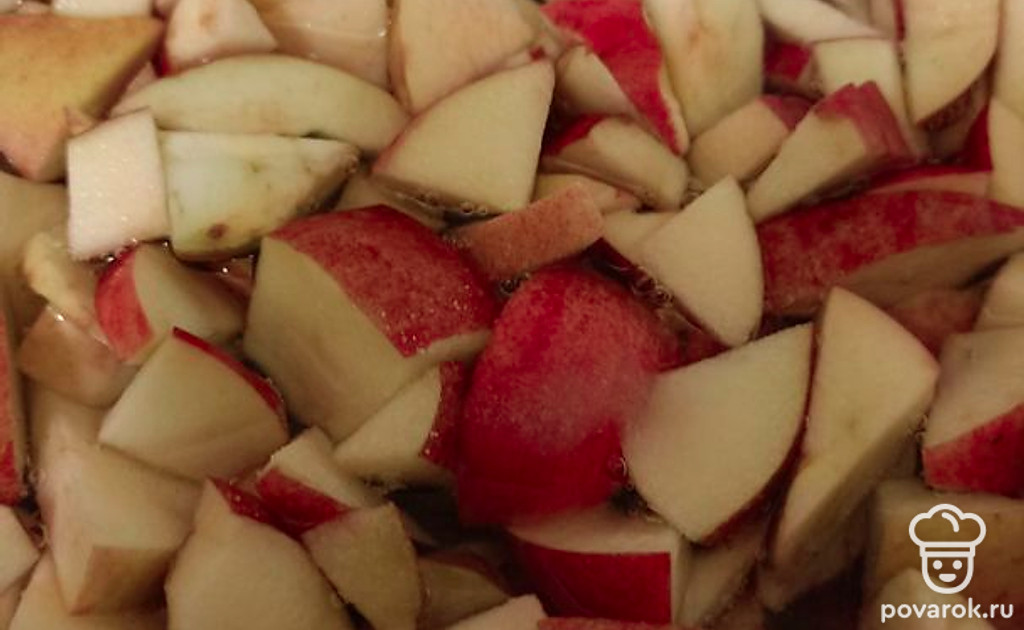 В воду добавить сахар и яблоки варить 6 минут. Готово!