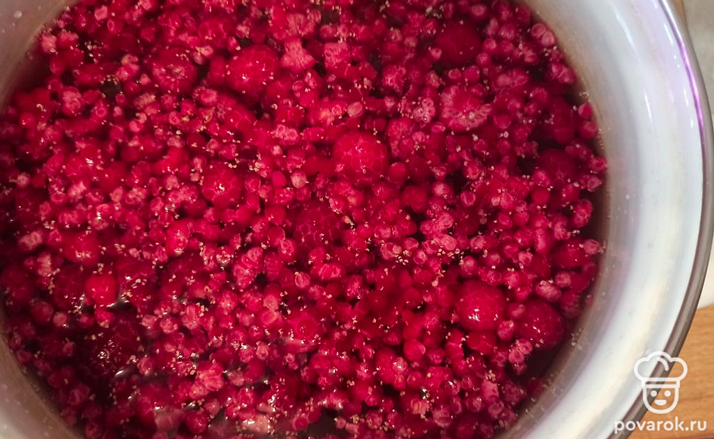 Заливаем малину водой и ставим на средний огонь. Доводим до кипения.