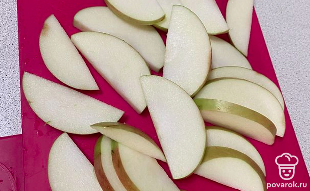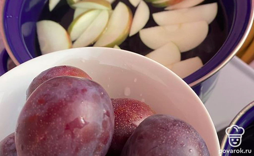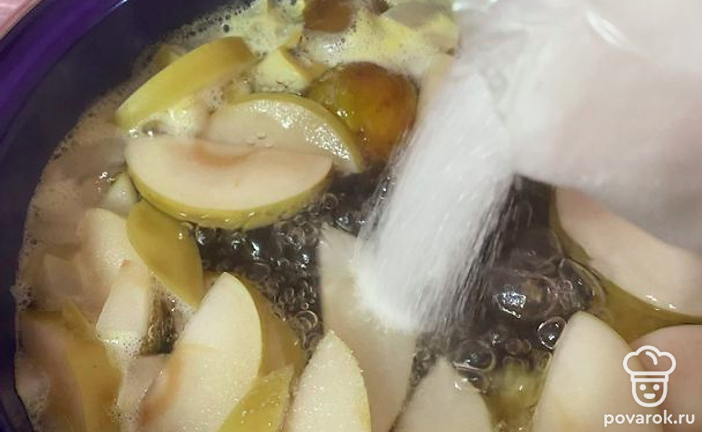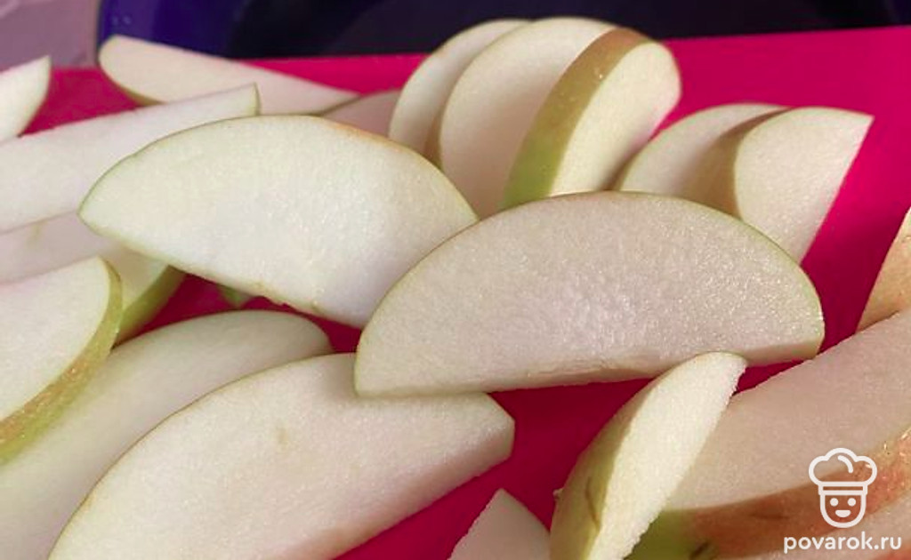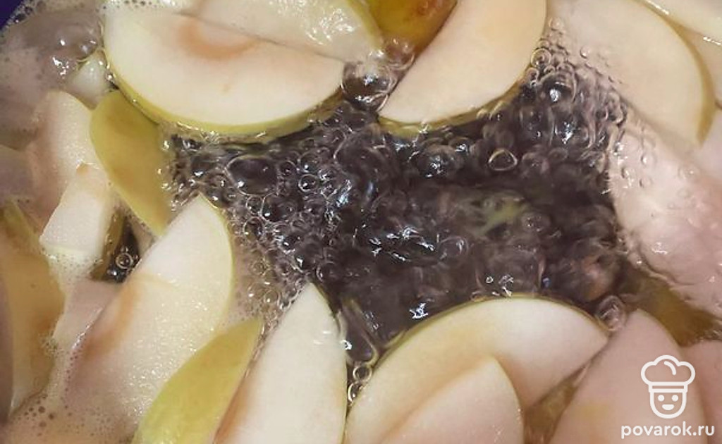 Выкладываем яблоки в кастрюлю с горячей водой.