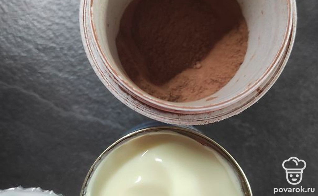 К сгущенке добавляем какао, перемешиваем с кипяченой водой.