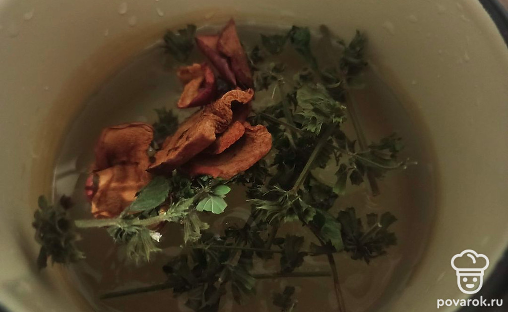 Вкусный, успокаивающий напиток с сушеными яблоками, мятой и лимоном.