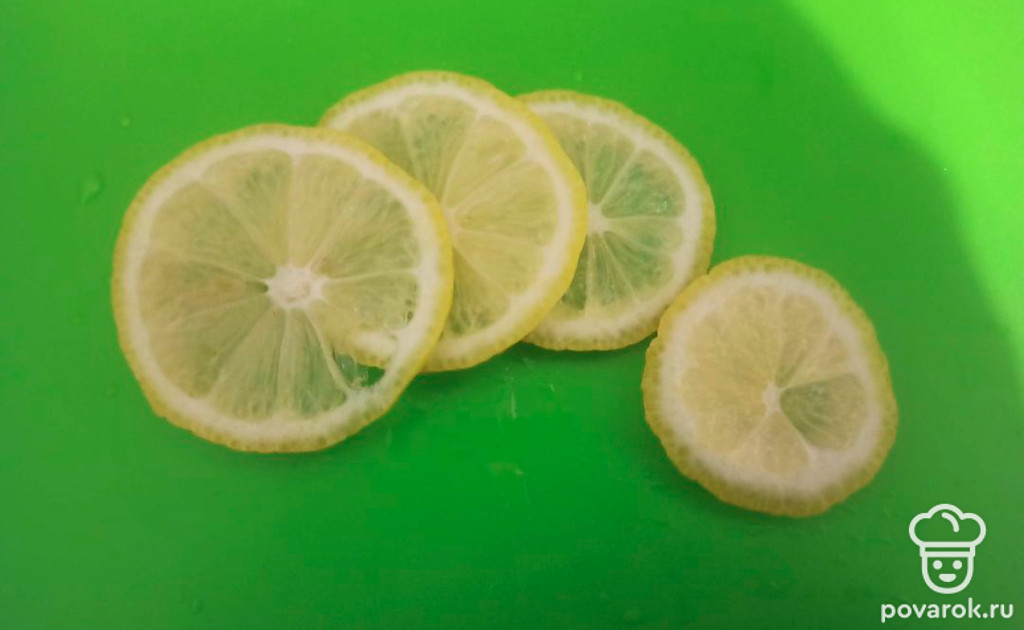 Лимон нарежьте дольками. Потребуется 4 тонких дольки.