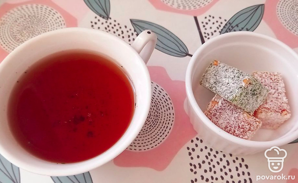 Чай можно подать с восточными или любыми другими сладостями. Можно добавить сахар, мед или сироп топинамбура по желанию.