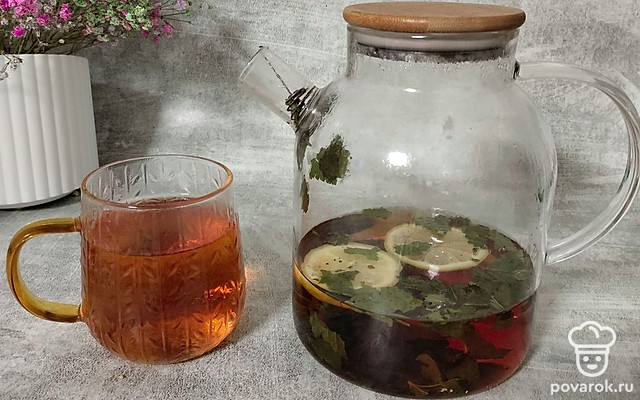 Чай с листьями смородины и лимоном