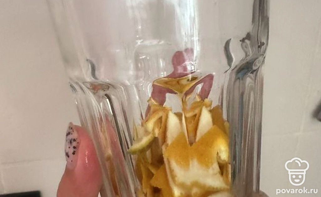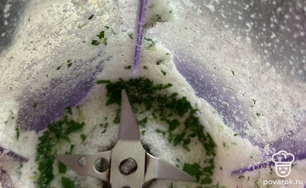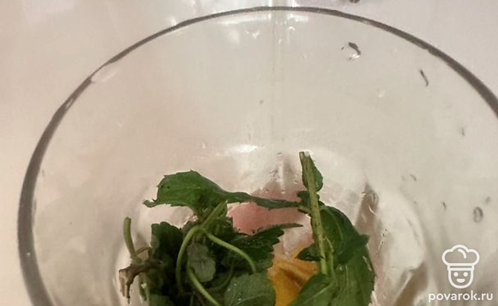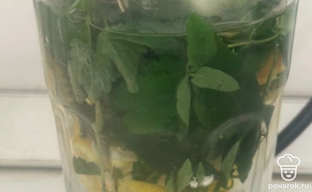 Лимонную мелиссу засыпаем сахаром и пробиваем блендером.
